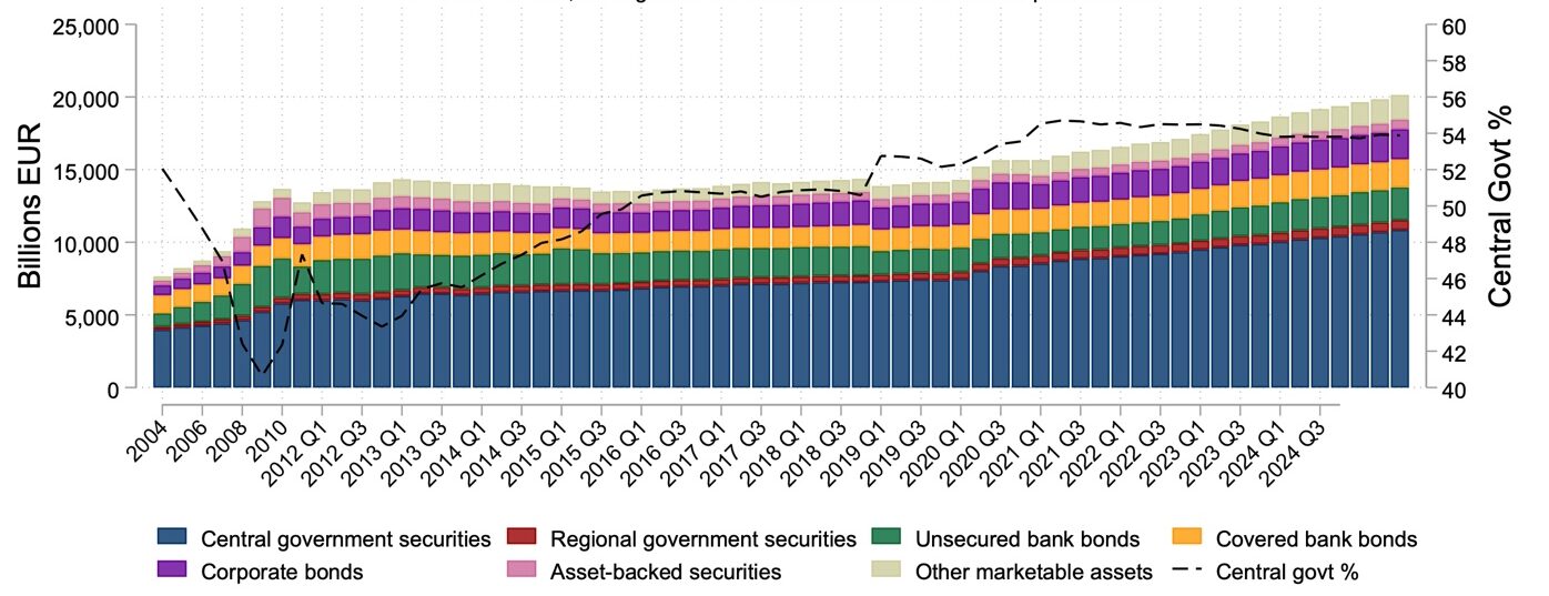 The ECB’s treatment of sovereign debt has become central to Europe’s financial stability.[1] Since the euro area sovereign debt crisis, the European Central Bank (ECB) has relied on large-scale government bond purchase programmes to stabilise financial markets and safeguard monetary-policy transmission. The announcement of Outright Monetary Transactions (OMT) in 2012 is widely credited with halting the sovereign debt crisis, while the 2020 Pandemic Emergency Purchase Programme (PEPP) helped contain a new bond-market panic triggered by the Covid-19 shock. In a world of fragile financial markets, heightened geopolitical tensions and growing climate-related risks, such market stabilisation tools are likely to remain essential. Even as the ECB scales back active asset purchases, design choices in the collateral framework used for “everyday” monetary policy continue to shape the functioning of sovereign bond markets.